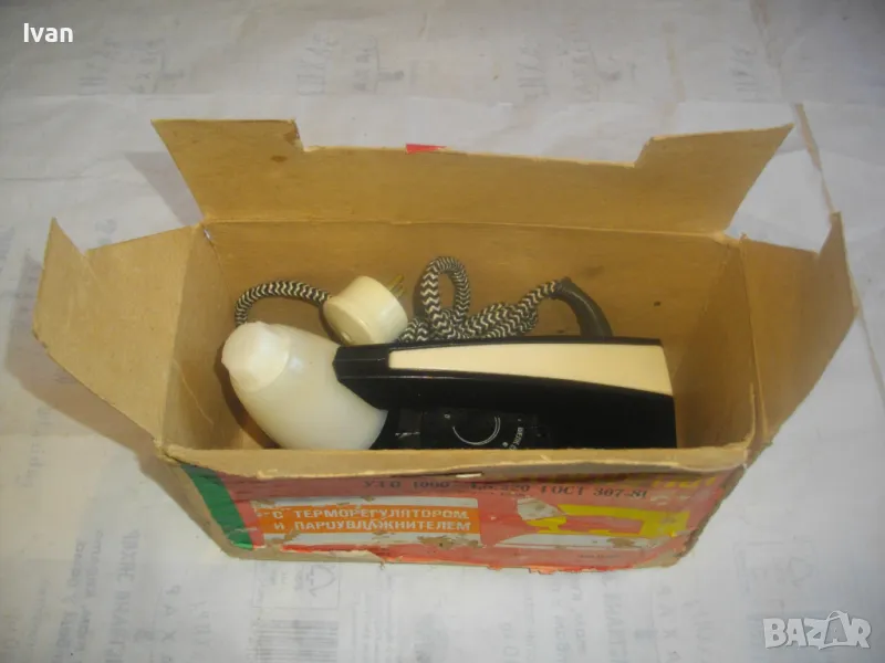 Съвсем нова, неизползвана и неупотребявана електрическа ютия с терморегулатор и пароувлажнител, оригинално руско съветско СССР соц производство, маркирано 1988 г.