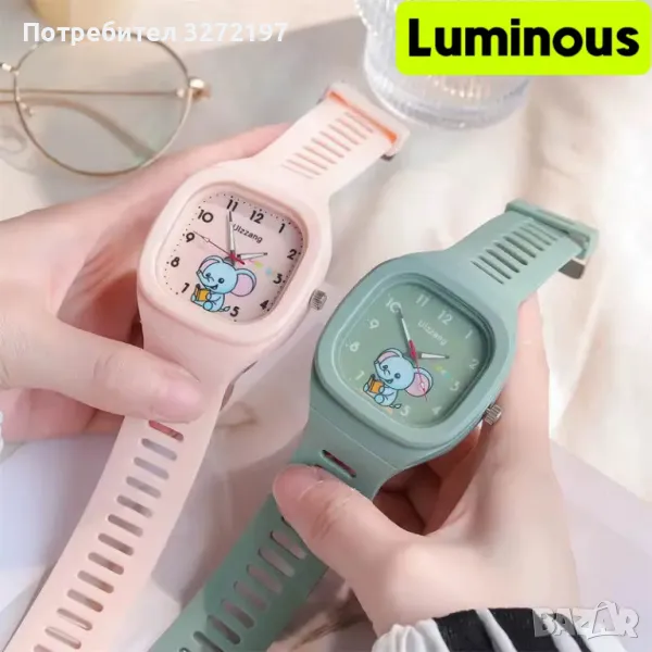 MINISO Сладък детски кварцов часовник,Моден светещ,Различни цветове(вижте снимките),подарък за деца със светещ анимационен слон.