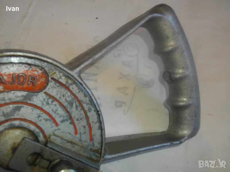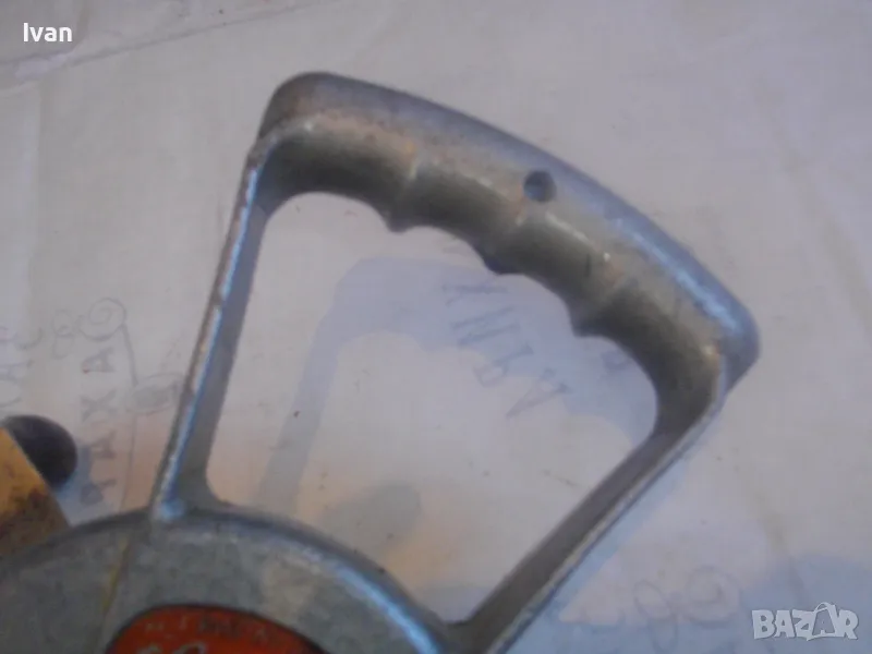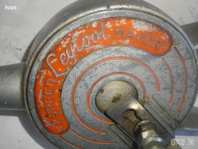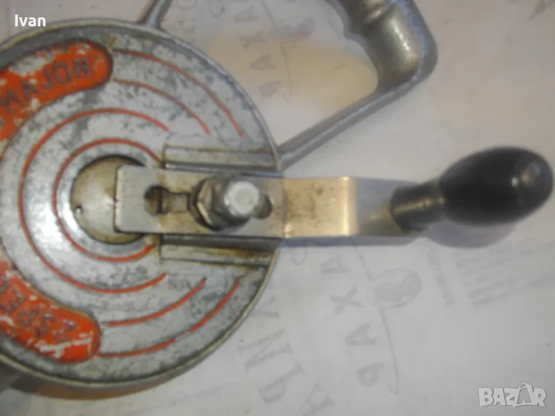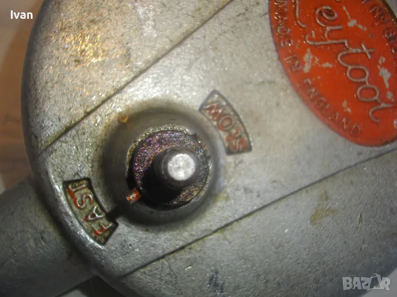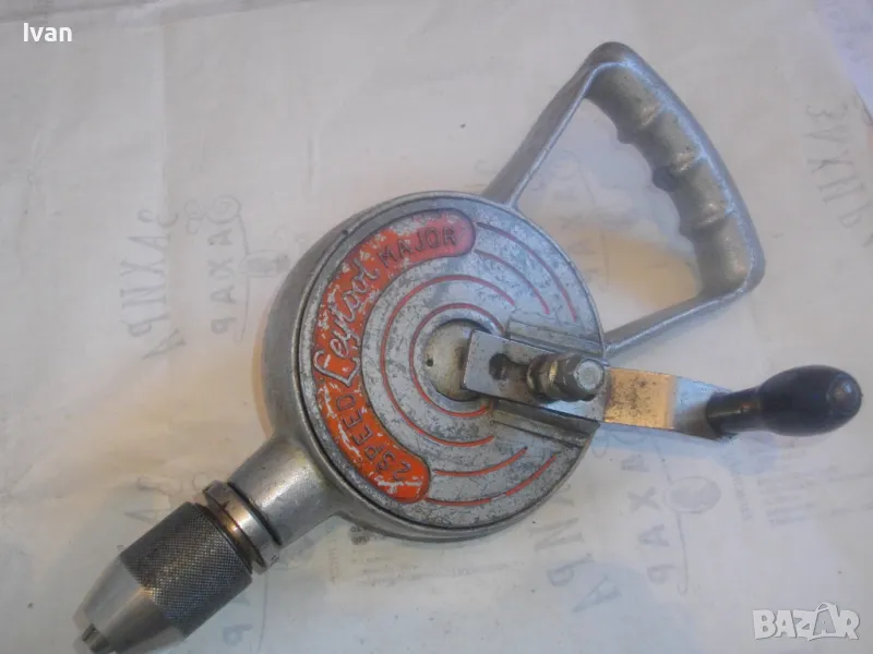 ОПИСАНИЕ на алуминиев маткап - цена 129 лв. Голям, масивен, изцяло от алуминий. Старо качество, маркирано оригинално английско производство. Двускорстна ръчна дрелка бормашина. Много запазен външен вид и добро работно механично състояние. Маркировки - 2 Speed. Производител - Leytoot . Марка маркирана - MAJOR . Производствена маркировка Leytool Madе in England. Функции Fast - Slow. Патент Pat № 5133709. Инструментът е почти нов, много запазен. Масивна алуминиева дръжка задна, еднокомпонентна с корпуса. Старнична дръжка върток - стоманен с дървено покритие. Патронник - стоманен до 10 мм. Дължиина на маткапа - 340 мм. Ширина дръжка - 140 мм.Тегло на инструмента - 2,2 кг.