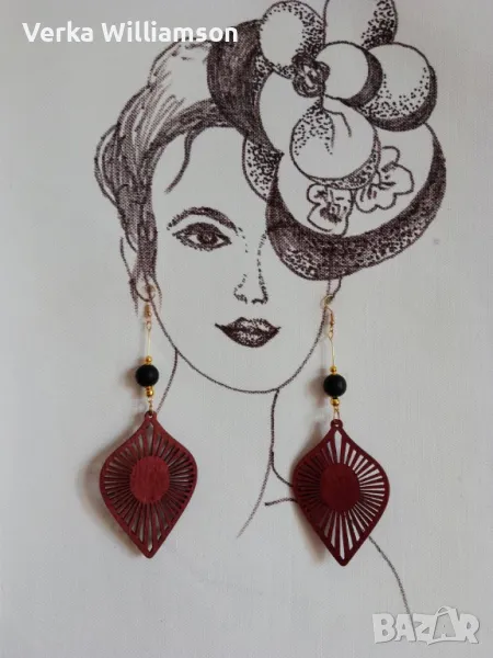 Тъмно червени обици от дърво модел 5 → Обява 48331185
