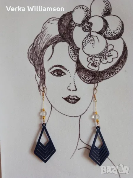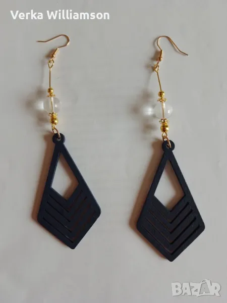 Тъмно сини обици от дърво модел 6 → Обява 48331223