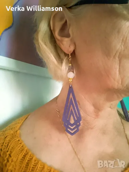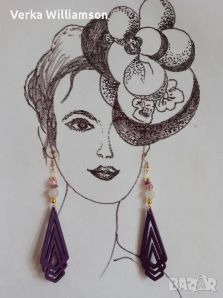 Лилави обици от дърво модел 9 → Обява 48331372