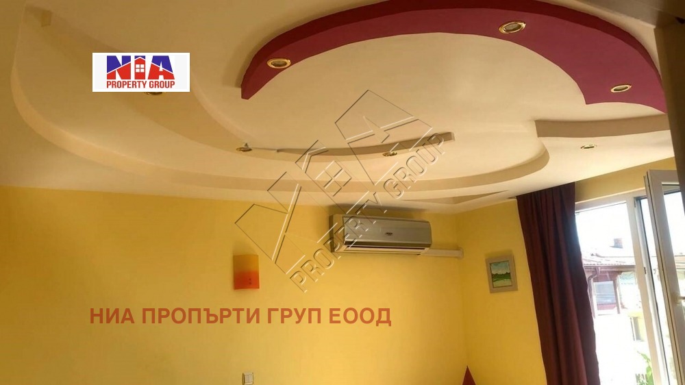 Външна изолация, двойно окачени тавани, качествена дограма с троен стъклопакет. Ламинат в стаите, теракот в коридора, стълбището и банята. Масажен душ в банята. Скрити осветления в стаите. Интериорни врати. Всички мебели са от естествено дърво-чам. Кухненско обзавеждане от чам, с ъглов диван и маса за хранене. Климатици във всяка стая и подвижен такъв в таванското помещение, пералня, сушилня, три хладилника, микровълнова, фурна. Спалните с гардероби и легла от масивно дърво-чам.