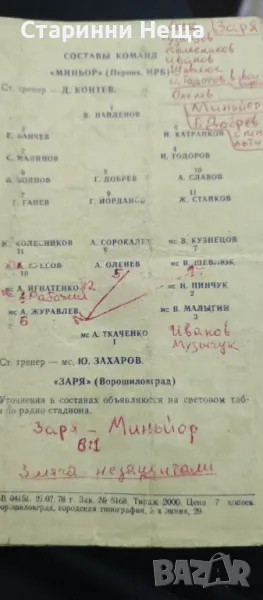 Миньор Перник България СССР тираж 2000 Стара футболна програма футбол програмка → Обява 48331792