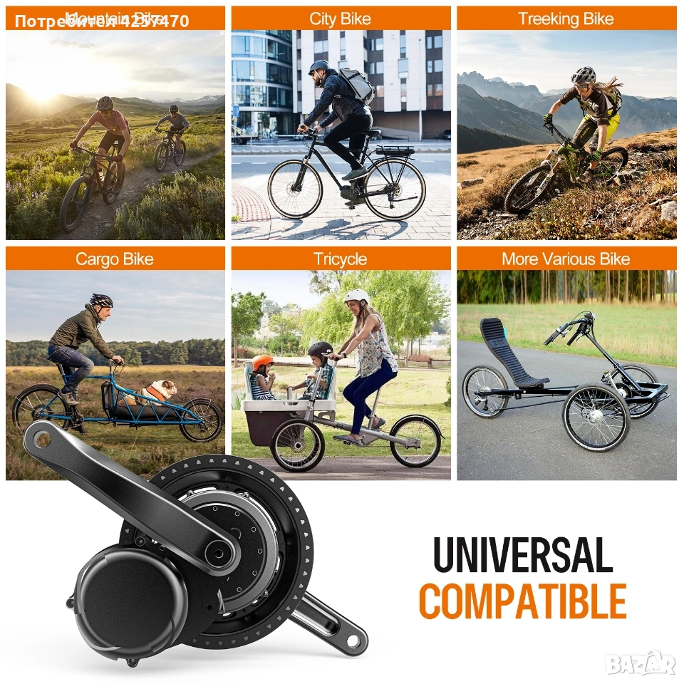 Мотор-кит за централно движение с торк сензор. Колкото по силно натискате педалите толкова повече мотора ви помага.