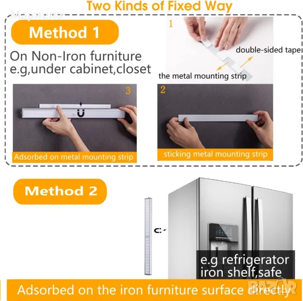 Светлините с вграден магнит могат да залепват за всякакви железни изделия. И ние предоставяме метална монтажна лента и двустранна лента в кутията за монтаж за залепване на нежелязна повърхност. Можете да я носите навсякъде по всяко време .