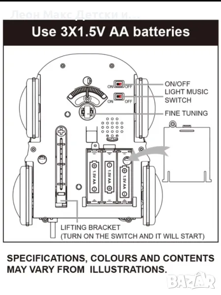 Машината работи с 3 батерии AAA (не са включени).