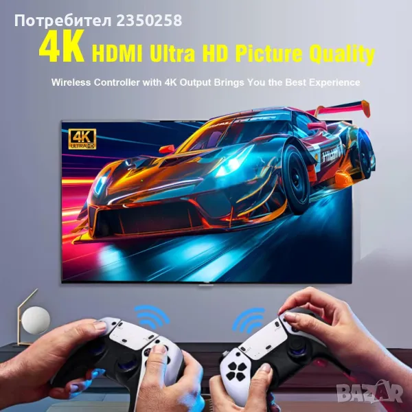 Ретро Конзола с HDMI, безжични джойстици за телевизор с вградени над 40000 игри и 2 джойстика с дизайн на Плейстейшън. Най-нов модел с кристално 4К качество на картината и напълно безжична.