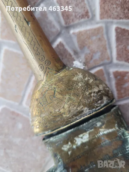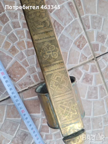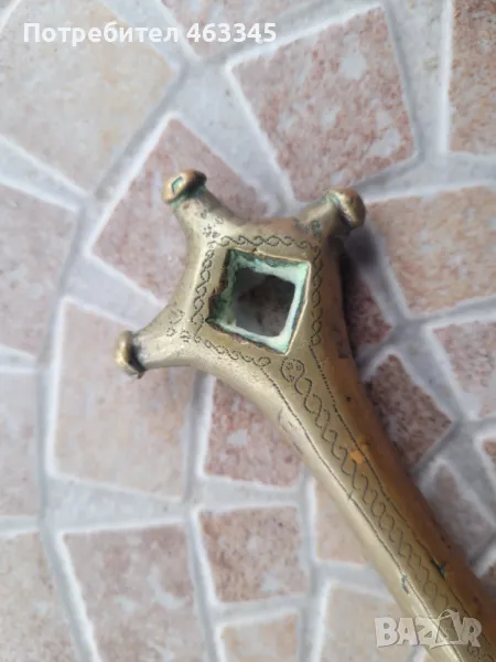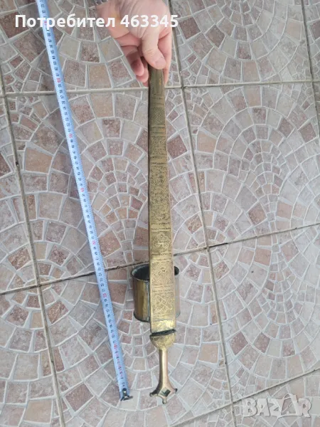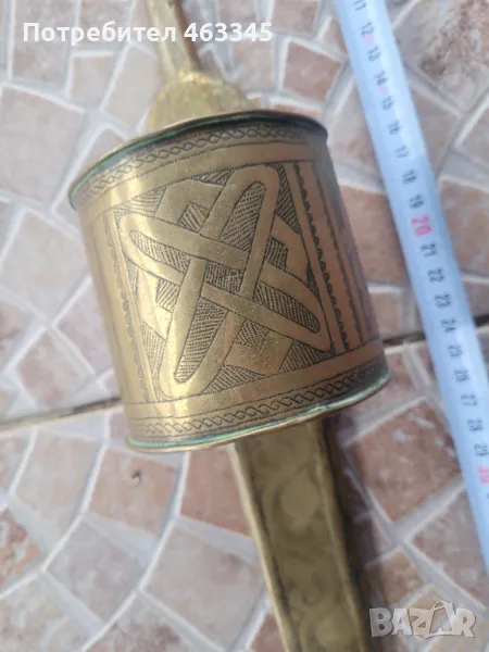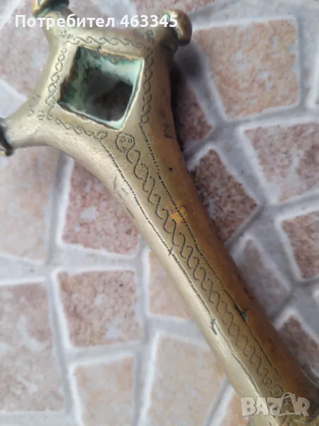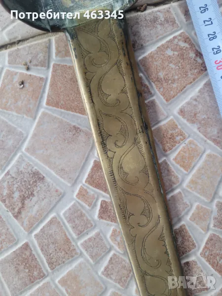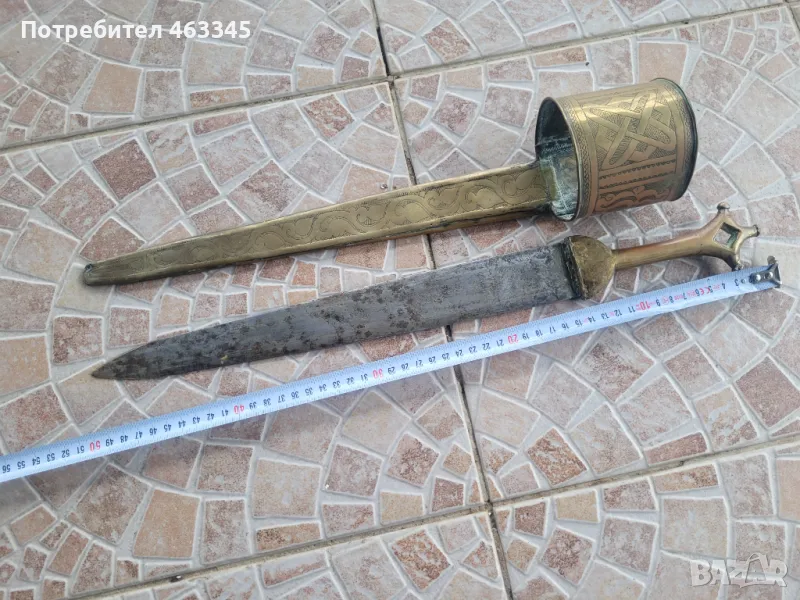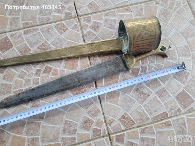 Изключително рядък арабски телек. Ефесът и канията са обковани с бронз, много богато украсен с геометрична гравюра. На канията има широк бронзов пръстен, лойто се е надявал на подмишницата. Фактически камата се е носила на подмишницата. Бронзът е с отлична патина, непочиствана. Самото острие на камата е без ръжда, също с много добра патина. Голям редкаж