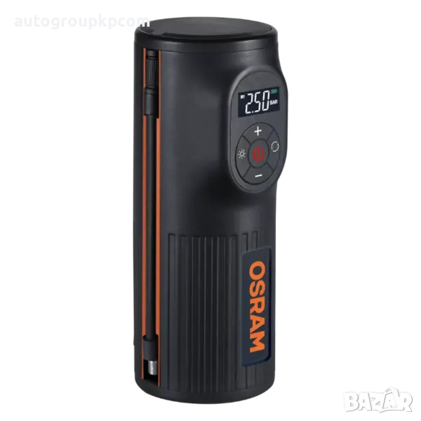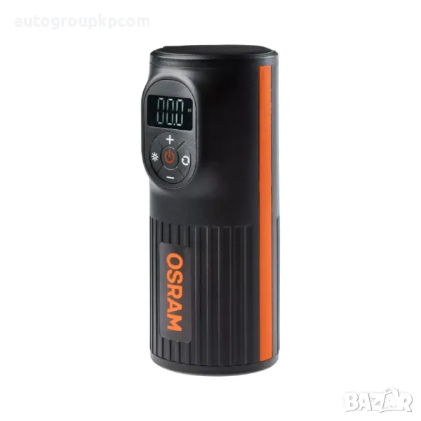 Компактен акумулаторен компресор за помпане на гуми OSRAM TYREinflate 2000 с цифров дисплей с подсветка за по-лесно и по-точно измерване на налягането и помпане на гуми, който показва стойностите на налягането в BAR, kPA и PSI. OSRAM TYREinflate 2000 има вътрешна памет и благодарение на функцията за памет могат да се програмират и съхраняват до четири различни стойности за различни гуми. Освен това е оборудван с функция за автоматично спиране: OSRAM TYREinflate 2000 спира автоматично, когато се достигне правилното и предварително зададено налягане. Чрез включения USB кабел OSRAM TYREinflate 2000 може да се зарежда и не е необходим 12V контакт за захранване, така че това не е само за помпане на автомобилни гуми, но може да се използва и за помпане на велосипеди, скутери и мотоциклети. Лекият и компактен дизайн на OSRAM TYREinflate 2000 го прави идеален за използване в движение и може да се носи почти навсякъде. С включената чанта за съхранение, просто съхранявайте в жабката на колата, чанта или раница. Включена е скоба за монтаж и съхранение на велосипед. Благодарение на функцията powerbank, OSRAM TYREinflate 2000 може да се използва и като зарядно устройство за електронни устройства като напр. мобилен телефон. В допълнение, интегрираната функция на фенерче може да осигури осветление през нощта или при условия на лошо осветление. Включен е и комплект адаптери от 2 части, който може да се използва като конектор за велосипеди, топки и други надуваеми лодки с клапани Presta.
