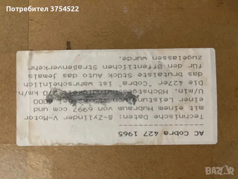 - AC Cobra 427, 1965 г. / р-р 17 х 12 см