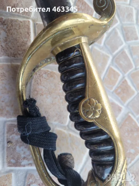 Японска парадна сабя Киу Гунто обр. 19, от Втората Световна Война. Сабята е в много добро състояние без ръжда и без нарушена никелировка на острието. Месинговия ефес, носи стилизираната императосрска хризантема (кику), и е с много добра патина. Без хлабини и без дълбоки драскотини. Ножната е с оригиналната си никелировка, която също е в отлично състояние. Към върха й има едно вдлъбване. Много рядка сабя за нашите земи - 100% оригинал, без ремонти