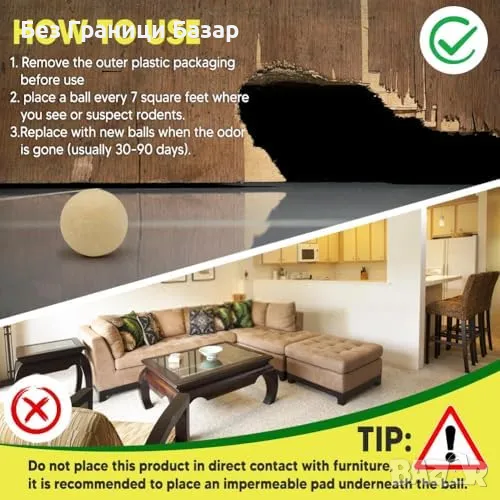 Мощна защита срещу мишки, плъхове, паяци, мравки и хлебарки.