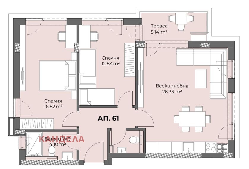 Жилището, което Ви предлагаме е с добри размери с много светлина от големи прозорци и се състои от: светла всекидневна с кухненски бокс, две спални, тераса, баня с тоалетна, отделно тоалетна и антре. Много добри отзиви за помещенията, пространството и функциалността на жилището, на клиенти от предишни завършени жилища с подобна квадратура и разпределение на инвеститора.