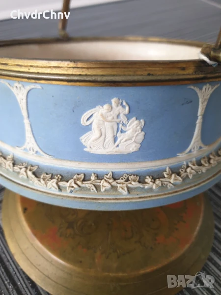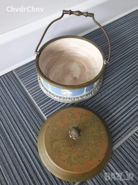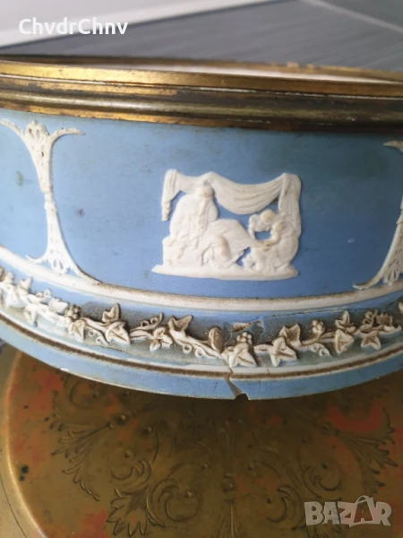 Wedgwood Jasperware 16см/син яспис/стара английска порцеланова кутия-бижутерка с бронзов капак