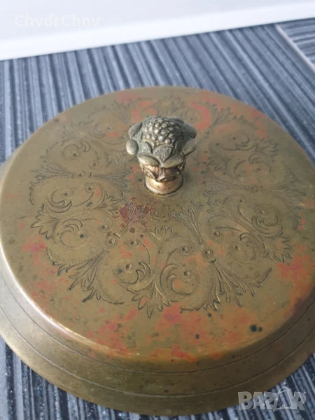 Диаметър 16 см (основа), 14 см (капак), металните части (борд, капак, дръжка) са от бронз, тежи около 1 кг.