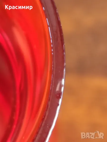 Ваза изящна, но с мини шупла на ръба, и фабрични мехурчета . Висока 17,5см., отвора е 6 см., 450 мл. → Обява 48339038