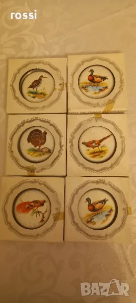 Vintage. 6 бр. нови немски чинии за стена с птици. Подложни чинийки. Калай. Порцелан. → Обява 48339463