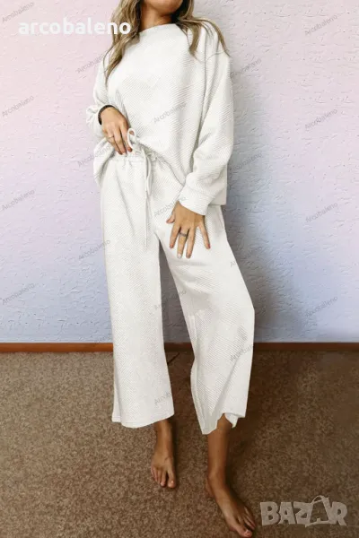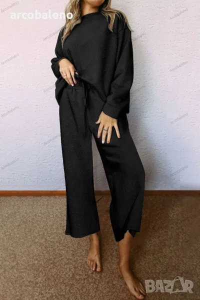 Дамски комплект от две части, широки панталони с блуза с дълъг ръкав, 2цвята