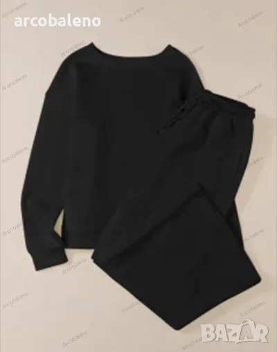 Дамски комплект от две части, широки панталони с блуза с дълъг ръкав