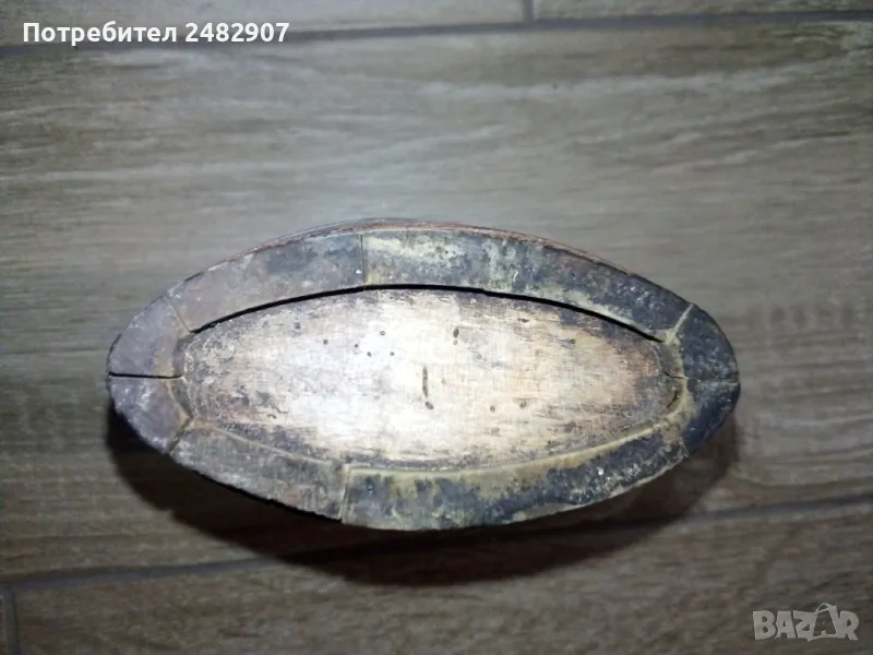 Автентичен дървен ретро сувенир. Размери - 13,5/17/4 см. Запазен, с нормални следи от използване.