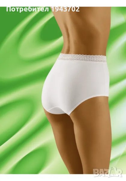 Дамски бели бикини с висока талия Wol-Bar Eco-Go. Изработени са от гладка памучна тъкан, като коланът е украсен с дантела.