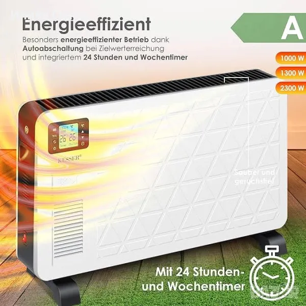 Страхотно: Високите сметки за електричество ни карат да замръзваме само като ги погледнем, така че е особено важно да пестим енергия, без да се налага да замръзваме. Благодарение на трите мощни нива на отопление (1000W, 1300W и 2300W), вие отоплявате само толкова, колкото ви е необходимо, и следователно можете да регулирате идеалната температура във вашите четири стени. Тъй като нашият нагревател се управлява чрез обикновени битови контакти, мобилният нагревател е гъвкав за използване.