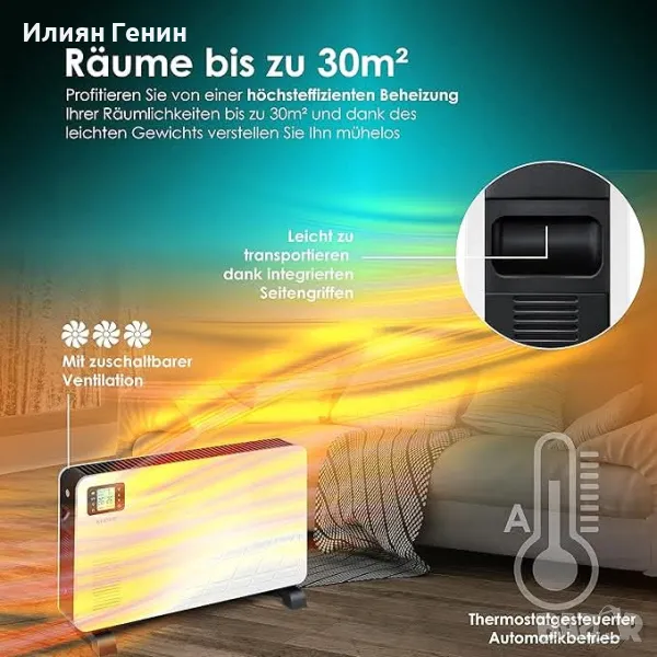 Отличен дизайн: Чрез избор между две цветови вариации мобилният нагревател се адаптира идеално към вашия дом. С големия LCD дисплей можете лесно да регулирате всички настройки като алтернатива на дистанционното управление. Вградените крачета осигуряват стабилно и здраво захващане. За транспортиране избрахме иновативна и изолирана дръжка за носене, което означава, че можете лесно да транспортирате електрическия нагревател до всяко място.