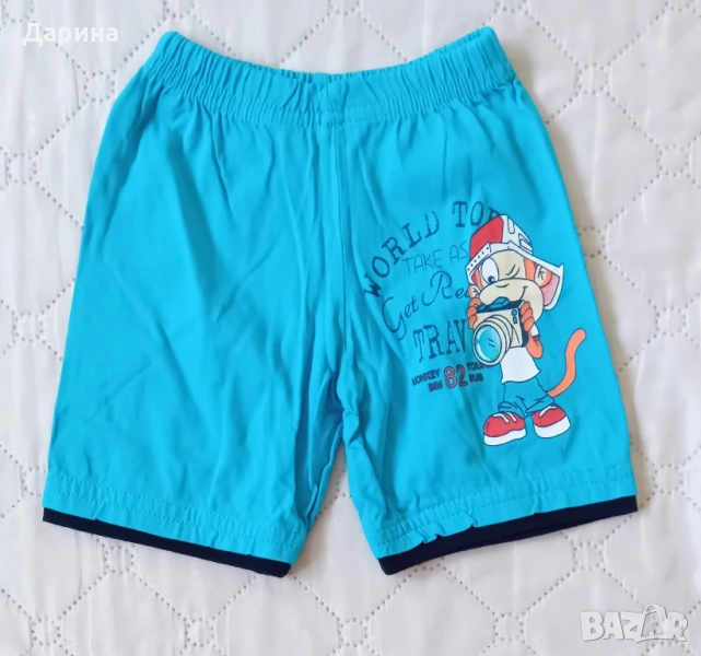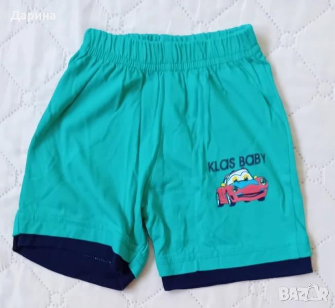 2 броя къси панталонки зелени и светло електриково сини : трико . Ширина в кръста едностранно : 18 см , ханш : 24 см , дължина : 24 см . НОВИ , само са изпрани . Изпращам с Еконт за сметка на купувача .