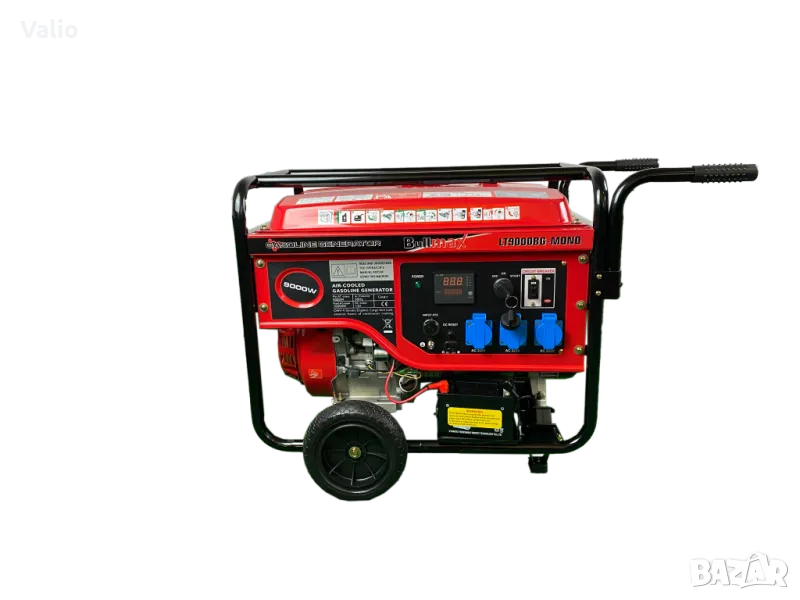 9.0 KW бензинови четиритактови генератори за монофазен и трифазен ток, с вградена фабрична автоматика в генератора и управляващо напълно автоматично старт-стоп табло, които служат за автоматичното стартиране/спиране на генератора при отпадане/ възстановяване на основното ел. захранване. Този модел генератор има вградена букса с която при закупуване на контакторна кутия генератора става напълно автоматичен. Гарантирано безотказно и без никаква човешка намеса. При прекъсване на тока в автоматичното старт-стоп табло, управляващо генератора има монтиран автоматичен таймер, който прави три последователни опита за стартиране на генератора. Автоматичният таймер, след възстановяване на електричеството гаси автоматично генератора след 30 секунди. В управляващото табло има вградена изцяло автоматична двупосочна контакторна система, не позволяваща на генератора при отпадане на нормалното електричество и при включване на режим генератор да се върне ток към електропреносната мрежа. И обратно – при възстановяване на нормалното електричество спира автоматично подаването на ток от генератора към електрическото табло. ВГРАДЕНО АВТОМАТИЧНО ЗАРЯДНО ЗА АКУМУЛАТОРА. При нашите генератори автоматичното старт-стоп табло следи за нивото на заряд на акумулатора и при нужда го дозарежда до нужния заряд, за да може всеки път генератора да стартира безупречно. Когато генератора не е превключен на режим автоматика, паленето на генератора е с ключ, който е на управляващото табло. Генераторите са с медни ротори и статори и са оборудвани с автоматичен смукач. Бензинов Двигател VТR 800 с въздушно охлаждане, 18 конски сили. Работна честота: 50 Hz. Вграден AVR /Automatic Voltage Regullator/.Автоматичен предпазител против претоварване на генератора. Магнетен стартер и автостартер с ключ и акумулатор. Транспортна рамка с колела и дръжки за по-лесно предвижване на генератора. Генератора има вграден дигитален дисплей показващ изходящият моментен волтаж, херцовете и отработените моточасове. 3 броя изходи за 230 V, 1 брой за 380 V и един изход за 12 V. Нивото на шума е 69-72 dB. Разход: 450 грама бензин на киловат час при пълно натоварване. Размерите му са: дължина 68 см., ширина 51 см. и височина 55 см. Тегло бруто с автоматиката 110 кг.Гаранционен и след гаранционен сервиз.