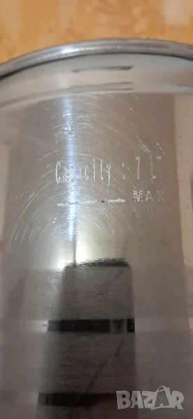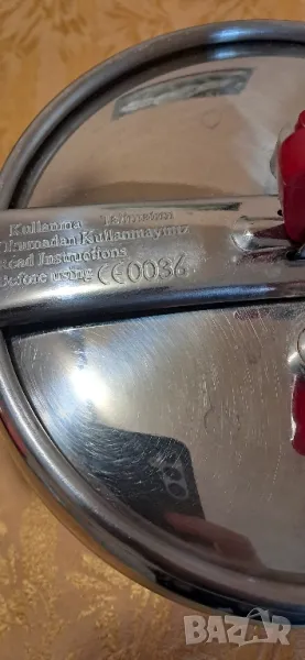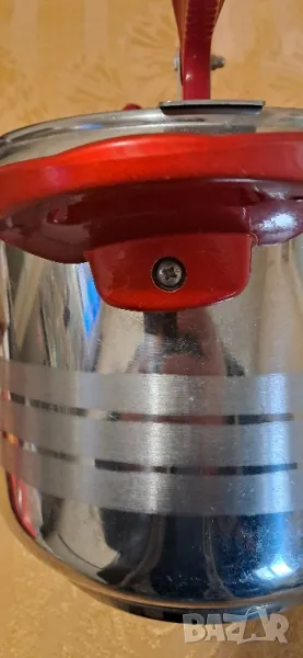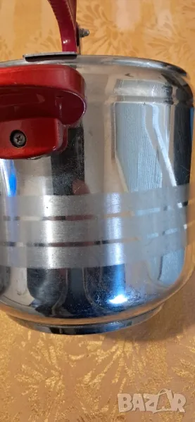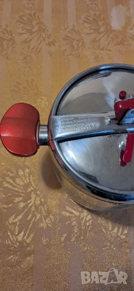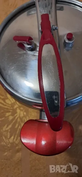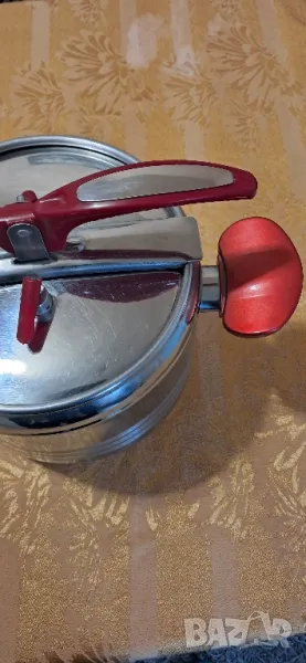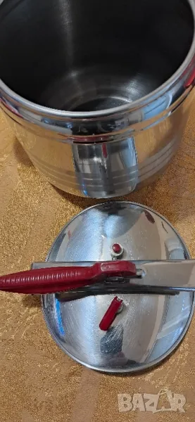 Тенджера под налягане 7 л.Състояние видно на снимките изключително запазена минимални следи от употреба, няма удари, ръжди, шупли не е загаряла, подходяща за всякакви котлони,двойно дъно удебелен метал работещи клапани и т.н.