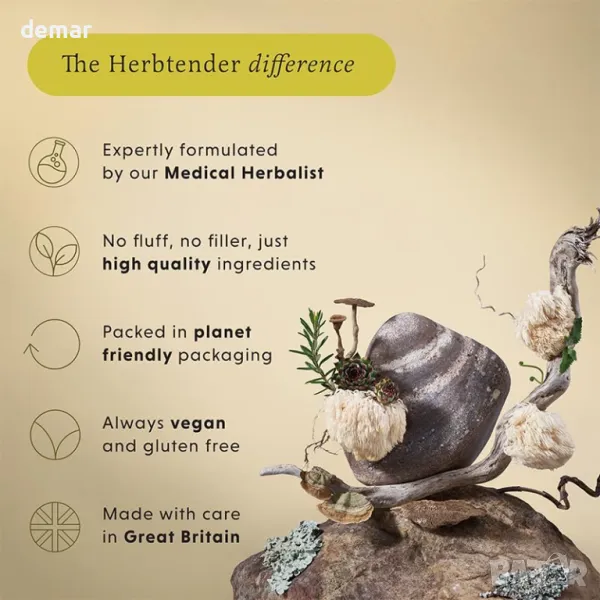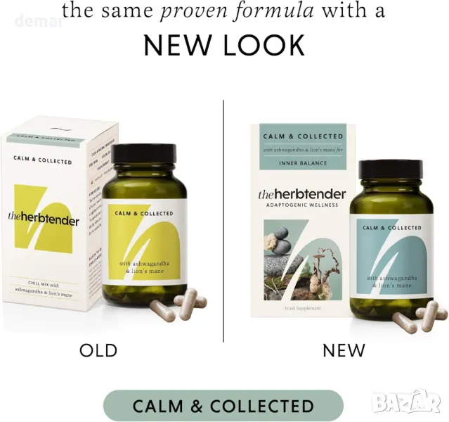 THE HERBTENDER, Calm & Collected - Веганска адаптогенна добавка, 60 капсули