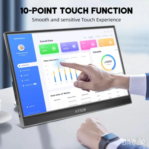 Преносим Гейминг Мултитъч Mонитор 15.6" FHD Сензорен екран 1080P