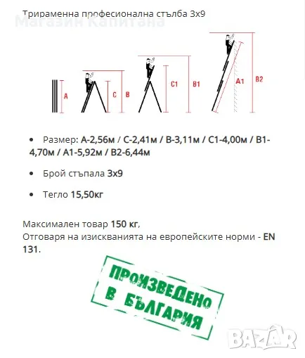 Трираменна Професионална Алуминиева Стълба произведена в България.