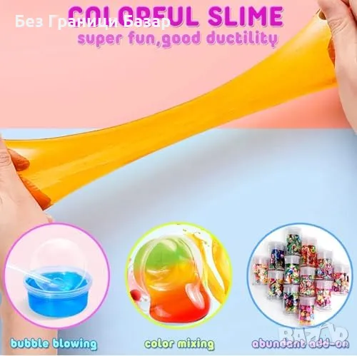 Включва разнообразие от играчки – кристални и галактически слаймове, с добавки.