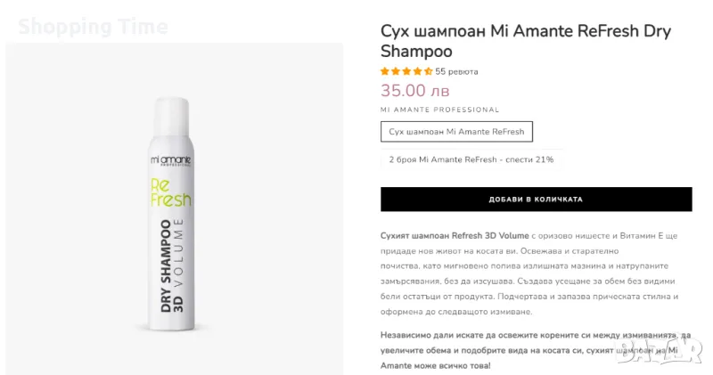 3. Сух шампоан Mi Amante ReFresh Dry Shampoo