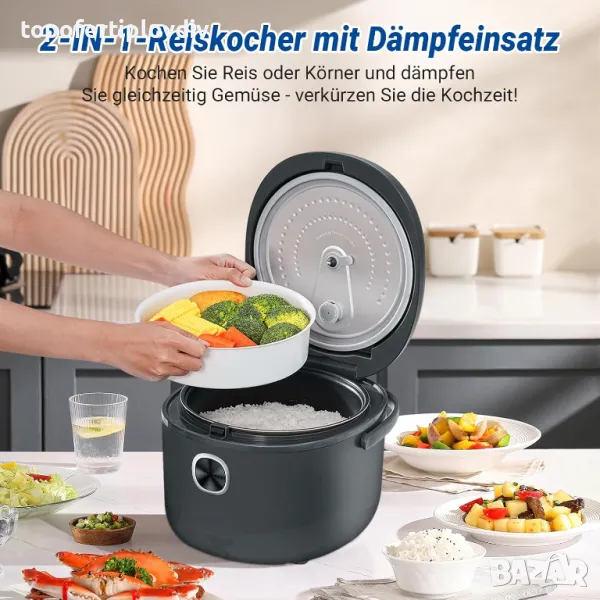 Уред за готвене на ориз 2 в 1 с вложка за пара. Не само уред за готвене на ориз, но и уред за готвене на пара.