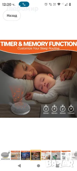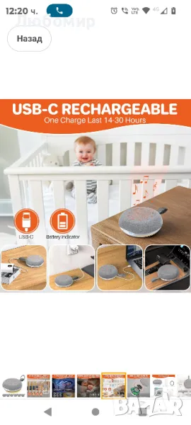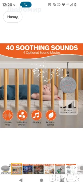 Бебешка преносима машина за бял шум FUNYKICH, акумулаторна машина за бял шум с 40