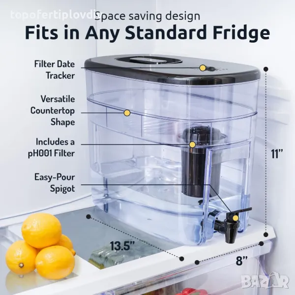 Филтър, включен в каната с филтър за вода: Този плотен диспенсър за вода се предлага с многостепенен филтър с голям капацитет, който минимизира замърсителите и подобрява вкуса и аромата на вашата вода. Филтърът пречиства до 96 галона вода за по-добро пиене