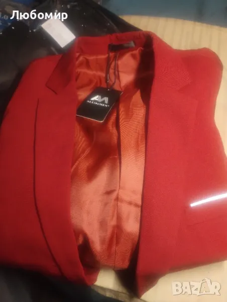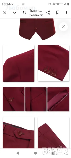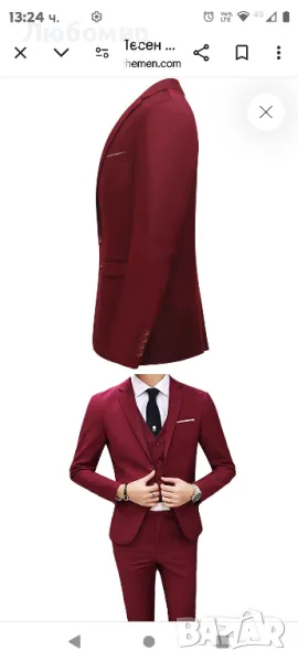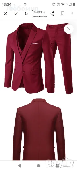 Червен костюм с назъбени ревери от 3 части