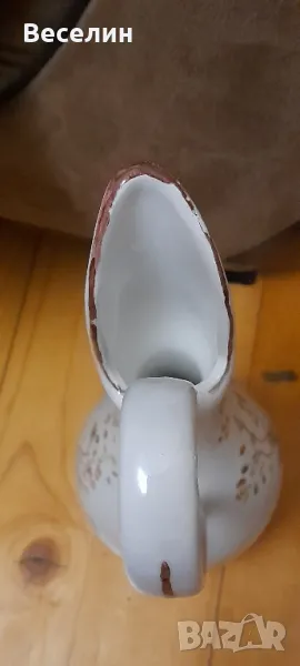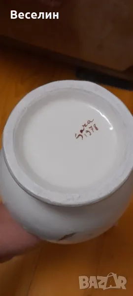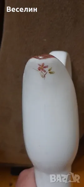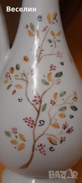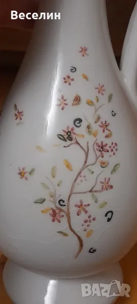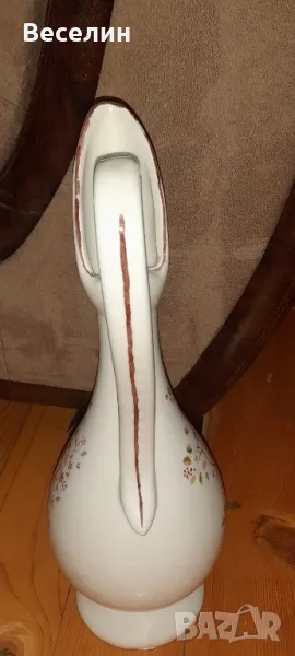Стара ретро ваза (Амфора) ръчно рисувани мотиви с дръжка тип лебедова шия и маркировка 1978 г височина 35 см Страхотна