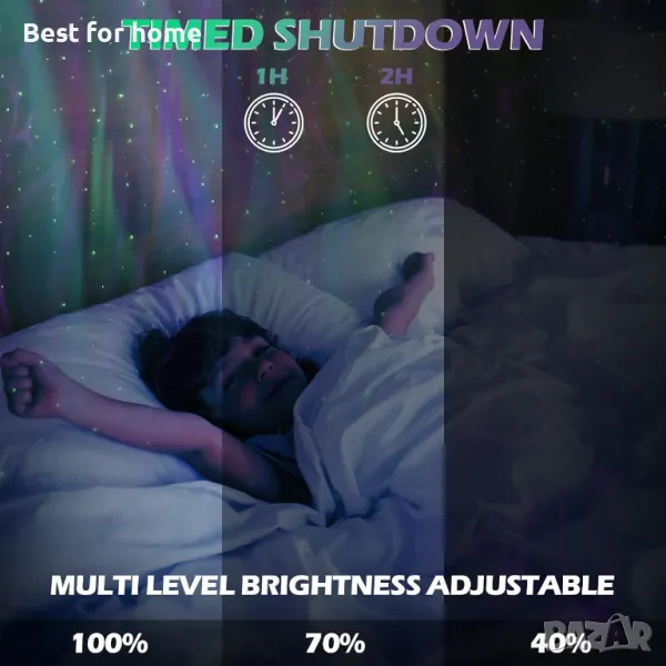 [ФУНКЦИЯ НА ТАЙМЕР И РЕГУЛИРУЕМА ЯРКОСТ] Нашето LED осветление за проектор има 3 нива на регулиране на яркостта (30%/60%/100%) и таймерът може да се настрои на 1H/2H чрез дистанционно управление. В допълнение, мъглата може да се регулира с ефект на потока и регулируема скорост, за да направите нощта си по-персонализирана. Таванният проектор Star с успокояващ дишащ ефект, за да придружите децата си в спокойна среда за сън.