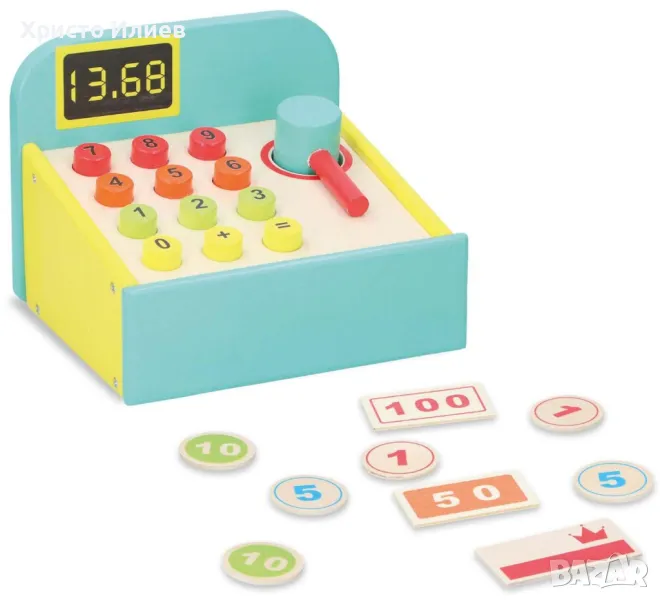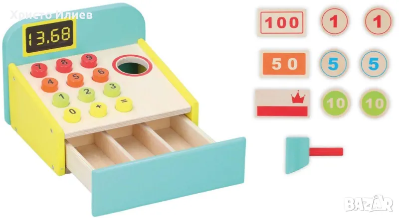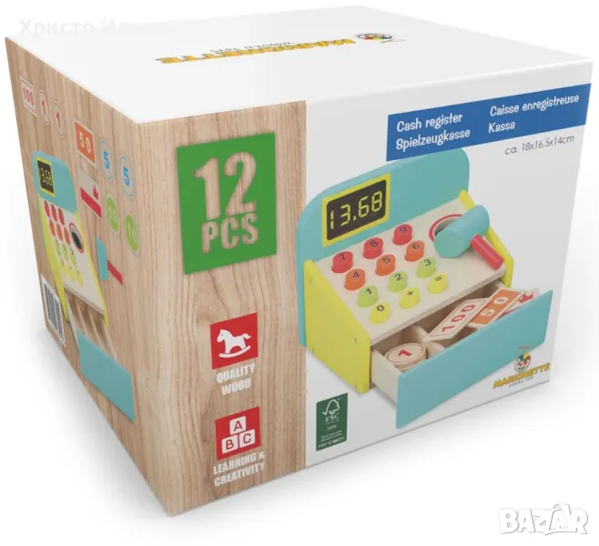 Дървеният касов апарат от Marionette е чудесно допълнение към всеки детски магазин или ресторант. Игрите, в които децата имитират възрастните, развиват социалните умения, въображението и фината моторика.