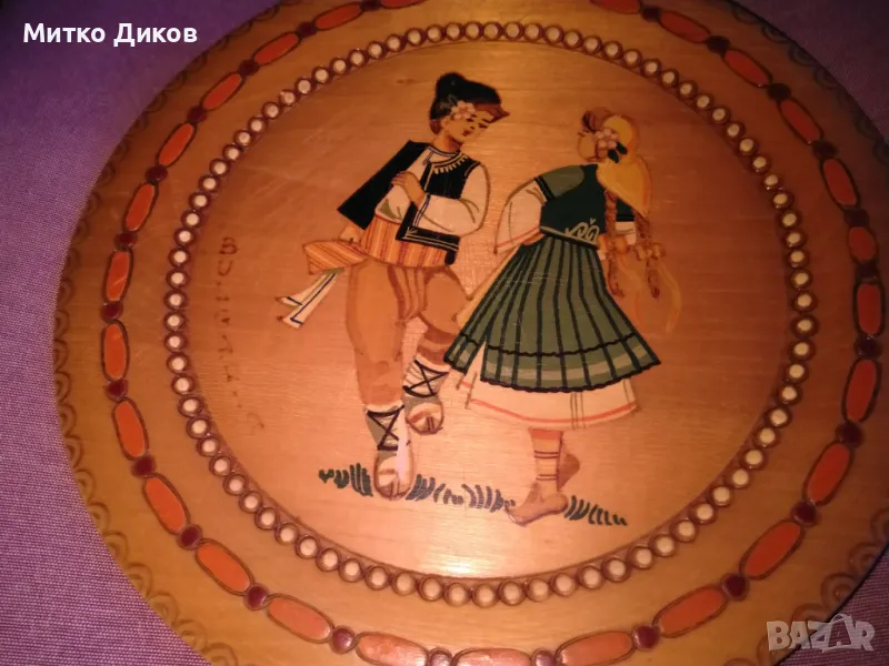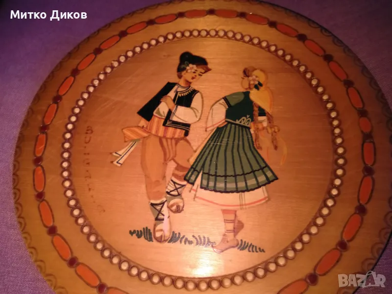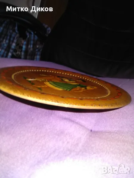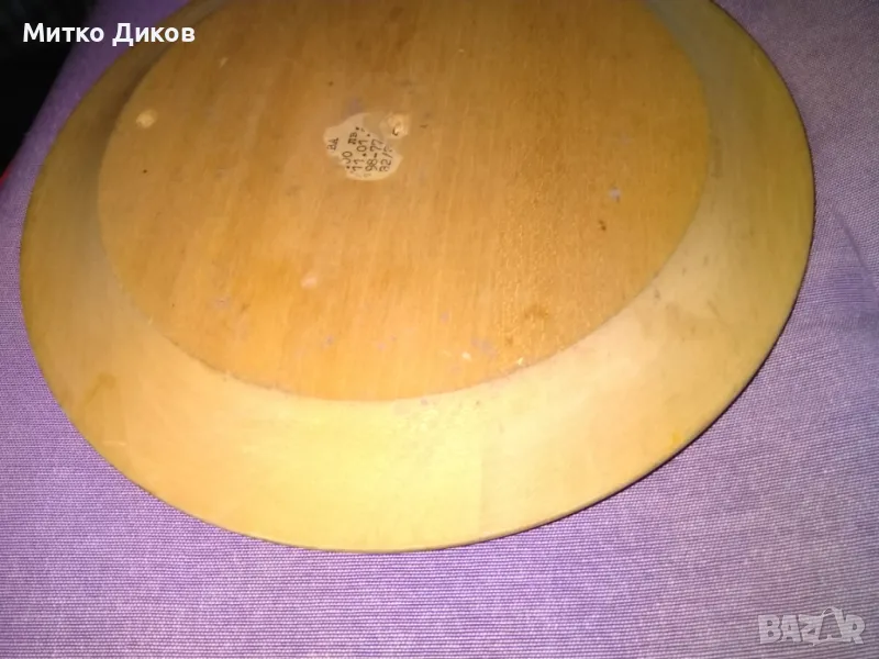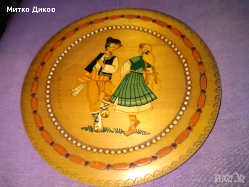 Дървена чиния за стена от соца 1971г народни мотиви фи 25см → Обява 48346948