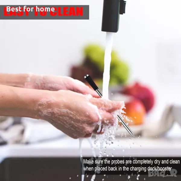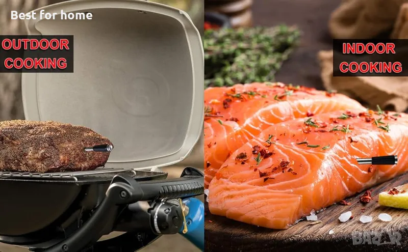 БЕЗОПАСЕН И ВОДОУСТОЙЧИВ: Сондата на термометъра е изцяло изработена от неръждаема стомана 304 за храни и топлоустойчива пластмаса. IP67 водоустойчив дизайн за лесно почистване. Термометърът за месо достига максимална температура на откриване от 212°F и издържа на максимални температури на околната среда до 608 °F, което го прави подходящ за използване във всяка фурна, грил, тиган и др.