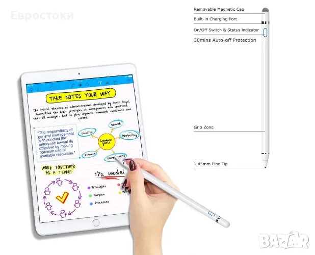 Време за зареждане и използване. Просто заредете стилуса за iPad за 1-2 часа, батерията може да се използва за 10 часа. След като писалката е неактивна за 30 минути, тя автоматично ще активира режима за пестене на енергия и екранът на писалката автоматично ще се изключи, което прави захранването по-издръжливо.