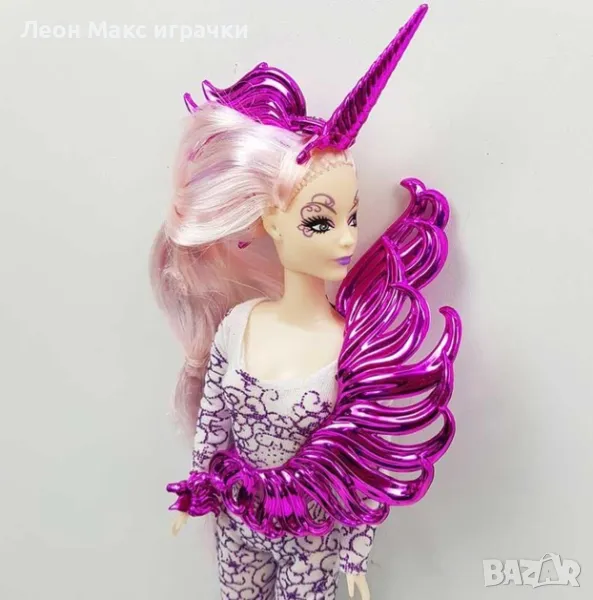 По тялото на куклата има голям лъскав гребен, подобен на гривата на истински еднорог.