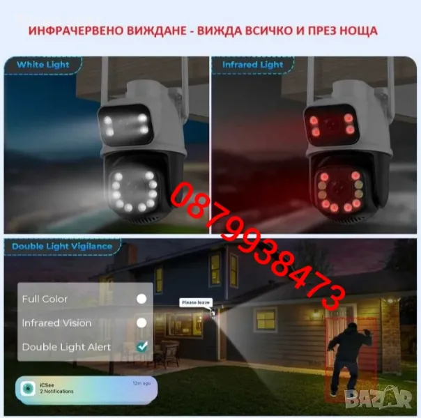 ТОП ЦЕНА ICSee Двойна камера Безжична WI-FI camera 8 X ZOOM
