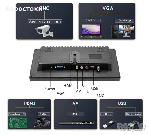 Висока резолюция: 10,1 инча TFT LCD екран: 1024 x 600. Съотношение: 16:9 Захранване в рамките на 9V до 30V.
