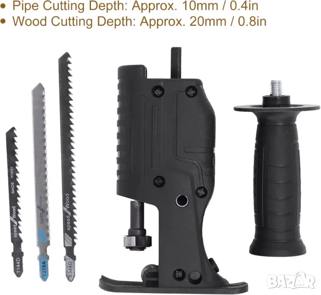 Иновативен адаптер от бормашина към електрически трион drill to saw converter + 3 броя ножове и разглобяема дръжка.